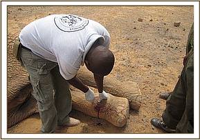 Treatment of a young elephant bull, Taita Sisal Estate, Mwatate, 12th August