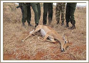 Treatment of a female Impala, Voi safari lodge,Tsavo East, 21st August