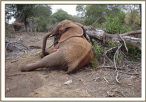 Taita Hills Sanctuary (Salt Lick) had several snare cases this month. The first was a five year old elephant calf with a loose snare on the left fore leg. This was successfully removed on the 7th.