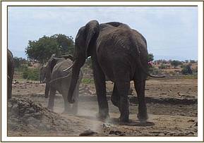 After the case at Salt Lick on the 14th, we proceeded to Ziwani in Tsavo West where an elephant calf had been seen alone near the Voyager hotel. The reports indicated that it was small and a possible candidate for rescue. We however found the calf to be over 4 years old and too big for the orphanage. It was in good body condition, active, feeding and we did not see any problem with it.