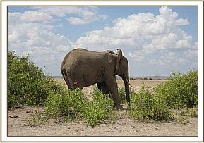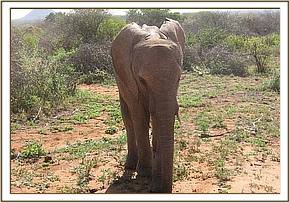 From Ol Donyo Wuas we passed through Kimana sanctuary where Imbirikani group ranch game scouts were tracking an elephant seen lame on the left hind leg. They thought the female elephant which was in a herd of about 10 had an injury although they could not approach too close to confirm. However, we did not see any injury but the animal was naturally lame because the leg was slightly shorter. The warden Kimana sanctuary who joined us to examine the animal confirmed to have known the elephant for many years and that it was born with the abnormality. No intervention was done.