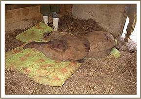 The other was an adult female with what seemed to be an injury from a high velocity object that penetrated the mid right fore leg from the side exiting from the opposite side. The wound was very narrow which means it was most likely a bullet. Although difficult to assess, it seemed the bone was not affected because the animal did not appear to be in a lot of pain. It could walk without much noticeable lameness and could bear full weight on the leg which is not the case if the bone was affected. The other injury was on the lower left abdominal area which was narrower that the one on the leg and not deep (it did not go beyond the skin).