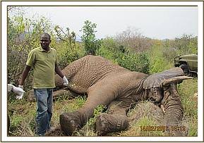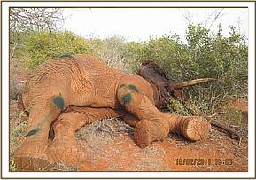 Lualenyi ranch still commands a lot of attention for injuries sustained mostly by elephants. In this case the male elephant aged about 25-30 years was spotted dead in Lualenyi ranch adjacent to Taita hills wildlife sanctuary.