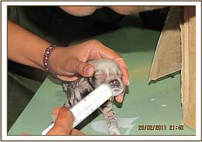 The cubs were boosted with a drink of glucose in boiled and cooled water which they consumed with speed, later they were fed with milk given four times a day.