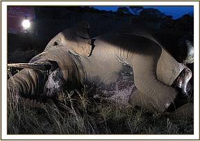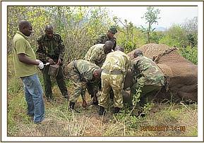 Immobilization was by use of 4 mgs of etorphine and 20 mgs of xylazine, it took around 5 minutes for full anaesthesia to be achieved.