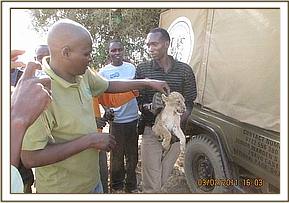 Rescue of abandoned striped Hyena cubs at Riata primary school, Taveta Station. 28th February.