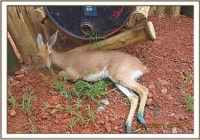 A duiker was brought in with allegedly vehicle hit injuries, treated but succumbed the overnight to the injuries, Tsavo East National Park, 22nd February 2011.