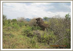 The elephant bull was limping and reluctant to move.