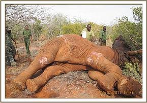Injured elephant bull at wildlife works Rukinga, 15th February.