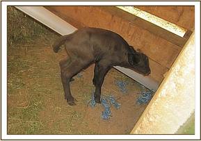 The gaping wound that cut through the skin and muscles was cleaned and sutured using size 2-0 nylon suture. Tincture of iodine and Oxytetracycline were applied and then green clay was used to cover the sutured area to aid in healing. 15 CC of long acting Amoxicillin and 10cc Dexamethasone was administered parenterally.