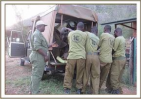 We reported back from the annual leave on 15th January 2009. During our absence, veterinary emergencies were handled from Nairobi. During that period we maintained contact with the Tsavos in regard to veterinary activities. The main activity that was undertaken in December was the translocation of 10 giraffes, 35 Kongonis (Coke’s Hartebeests) and 4 Impalas from areas neighbouring the parks to Shimba Hills national reserve in an effort to improve the biodiversity of the reserve. There was also an impala that was treated for a snare on the leg at Satao in Tsavo East as well as an elephant with a snare around the neck at the same place that was not found. There were no cases from Tsavo West while one elephant was treated for spear injuries in Amboseli national park.