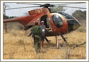 This elephant cow was seen by DSWT patrol aircraft near the Tiva River area with an arrow wound to the right abdominal flank with blood oozing out. The vet was airlifted by DSWT aircraft to the area and then boarded a helicopter to the site for easier darting.