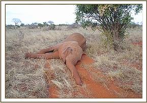 The first report was on the 8th and was of an adult (30-35 years old) tusk less female elephant at Kanderi (GPS 37M 0462297E, 9629466S) that was seen lying down and presumed to be dead. However, we found it up but it looked dull and was unable to move on being approached and provoked. There were no visible injuries but it was noticed that it avoided putting its full weight on the right hind leg which however had no abnormalities like swelling or injury that could be seen. Without any injuries, there was no veterinary assistance that could be given to it. It remained in the same area for two days. It died on the second day late in the evening.