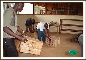 The unit was called on the 10th to examine and advice on the fate of Lilac Sterlings confiscated from poachers at Kuranze on the Kenya- Tanzania border. The birds numbering about 150 and stacked in four cartons without feed or water were destined for export for purposes that were not established. About 40 of them had already succumbed to the effects of hunger and dehydration. The culprits disclosed that the birds were in these cartons for seven days before the arrests were made. They have already been sentenced for this offence. The birds were released into an enclosure for two days where they were provided with feed and water before being released free. This was considered necessary in order to avoid predation when they were still weak and vulnerable.