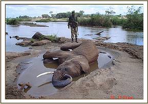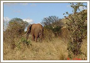 And an elephant treated in November last year was positively identified behind Voi Safari Lodge (GPS 37M 0459261E, 9641507S). This was the same general where treatment was done. The identification was from the scar left after the wound healed. The wound was on the caudal (back side) of the right elbow. The animal at the time of treatment was lying on the dart and we could not manage to turn it to get the dart out. We therefore let it go with the dart but we were sure that it would fall off in 2 to 3 days, which it did. The scar can be seen on the picture below though not very clearly. There were also other similarities on shape and size of tusks and ears.