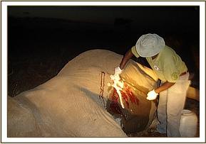 We also received the report of a purportedly injured elephant at Galdessa Camp in Tsavo East. To our disappointment however, we found the said injury to be a small swelling on the right side of the lower abdomen. It was not discharging contrary to the report and we considered it not necessary to intervene.