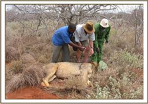 We also assisted in the immobilisation and re-collaring of another lion in the Taita Ranch within the Tsavo ecosystem in a similar project which has been ongoing since 2002. The collar replacement was necessary because the battery was dead and could no longer transmit data. The project’s objectives are very similar to the Amboseli one.