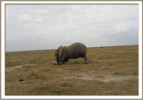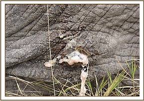 While in Amboseli collaring the lions, we treated a female elephant with an injury at the rear. Initially when the elephant was seen, it was thought the injury was as a result of a spear and treatment was considered necessary before the infection could spread.