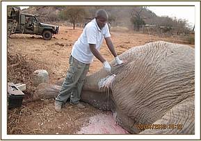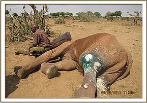 Treatment of an injured Elephant in Sala gate area, Tsavo East 14th July
