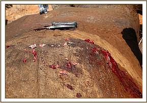 Immobilization was acheived using 7 mgs of Etorphine mixed with 60 mgs of Xylazine. The Buffalo went down in 5 minutes. There were multiple bite and scratch wounds suspected to have been caused by a lion attack on the lumbar-sacral and perineal region with hemorrhage.