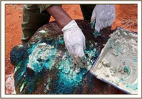 The wounds were washed clean and splashed with iodine. Oxytetracycline spray was applied and a final cover of green clay used to cover the wound. Long acting Amoxicillin and dexamethasone Hcl were administered parenterally.