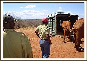 The unit was also involved in the movement of 10 orphans from the Nairobi (6) and Voi (4) orphanages to the new establishment at Ithumba. The movements were carried out on the 18th and 21st June. Those from Nairobi were young and were loaded physically without chemical restraint. The ones from Voi were accustomed to feeding in the transport truck for two days before loading. However, only 2 adapted to these and were loaded without any chemical restraint and transported together.