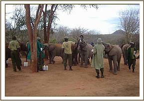 In October 2005, attempts were made to drive the elephants out with a helicopter through selected areas of the fence, which had been brought down and camouflaged with bushes. The elephants stubbornly refused to go out and it was decide to try other options. One of these options was to immobilise them and revive them outside the sanctuary close to watering points. To assess the success of this option, a small capture team comprising of two vets, a technician, four rangers and four drivers was sent to Ngulia between the 26th of June and 10th of July 2006 to undertake the exercise before a bigger translocation is planned. Thirty-eight animals were immobilised and removed from the sanctuary. This comprised of 35 bulls and a small family of three. There was no mortality.