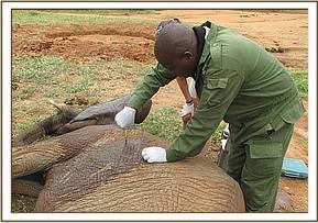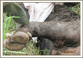 A week later the X-ray machine arrived as well as a metal detector but nothing was revealed inside the elephant. A repeat treatment was done and so far the elephant is progressing well.
