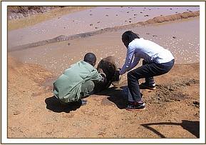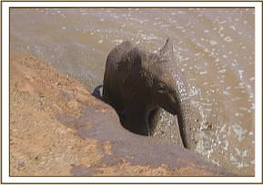 A temporary water hole was created by leakages along the Mzima-Mombasa water pipeline that was subsequently made deeper by elephants digging activity at the site. It provides water for elephants staying near the park headquarters during the dry season when most of the water holes are dry. Visitors to the area reported an elephant calf that was struggling to climb over the walls.