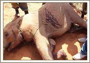 This hippo calf was rescued from a dried up dam near Kiunga, Lamu in December 2016 during the serious drought that ravaged parts of Kenya. The hippo calf was taken to DSWT Kaluku field Headquarters where a pond and a house was prepared for it. Two months ago the calf developed intestinal problems which were treated and the hippo made a full recovery. On the 10th June, the hippo was reported to be bloated, unable to submerge in its pond and anorexic.