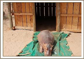 The following day the hippo was reported dead. An autopsy was undertaken and intestinal torsion with subsequent massive haemorrhagic enteritis observed. The hippo literally suffocated due to pressure from the abdomen on the lungs.