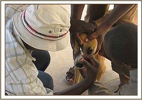 The other cases were a three-months-old caracal under the care of the senior warden Tsavo West, the attack of KWS dogs at Ithumba by a cobra, and deaths of birds at Manyani areaOf the three cases, the caracal was the first to be reported on 3rd March. It was limping slightly on the right hind leg and the senior warden wanted to know whether this could be due to a fracture as he suspected that some impalas that frequent his compound trampled on it. Examination however ruled out any fracture and a sprain of the hip joint was suspected.