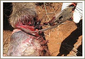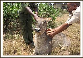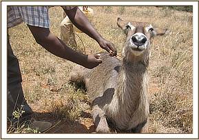 Clinical interventions were few and included treatment of three waterbucks with snares at Taita Hills Wildlife Sanctuary. The snares in two adult females were loose around the neck without any injury having been inflicted.
