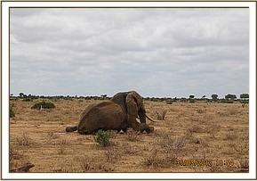 Satao camp located in the middle southern part of Tsavo east has entered into our records as one of the flash points of poaching related arrow shots. A case in point is of this adult male elephant that collapsed near a water hole in Satao shortly after drinking water. Autopsy revealed an area near the rump that was a typical arrow wound though the arrow head was not retrieved.