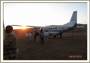 The left front limb had a severe deep cutting wound near the ankle joint caused by a wire snare that was removed in a previous intervention. The wound was not healing as expected. The calf was treated and loaded into a truck then transported to the Sarova Saltlick airstrip while the mother was revived using 48 mgs of Diprenorphine Hcl and left to join the rest of the herd. An aircraft arrived some minutes past 6pm and airlifted the calf to the Nairobi DSWT orphanage.