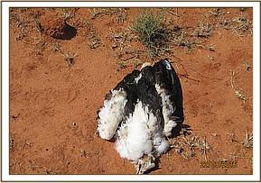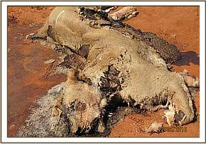 A report of predator poisoning was received by the vet unit with one lion, several vultures, hawks and a jackal being among the casualties. A cow carcass thought to have been used in the poisoning incident lay nearby. There was rapid decomposition due to high temperatures and no meaningful autopsy could be done on the jackal and lioness carcass. The vultures and eagle remains were collected and frozen for preservation and submission to the laboratory. The bovine carcass remains were destroyed by burning. The cause of poisoning is thought to be revenge for the cow killed by the lion after straying in to the park.