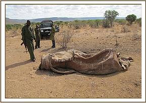 All three carcasses were visited and all were females as per the KWS records. The carcasses were all visited the same day and no autopsy could be carried out as they were highly decomposed to an extent that one only had a few pieces of bones left. No cause of death was ascertained and all were deemed to have died naturally.