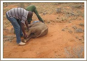 During March the Vet Unit attended to cases of injuries in elephants and other species due to poaching attempts by use of firearms and arrows. An autopsy on an elephant bull in Salaita, Tsavo West National Park revealed it had died of a bullet injury and four other carcasses were examined for cause of death but all were too decomposed for any meaningful autopsy to be undertaken. Several elephant calves were also rescued throughout the vast Tsavo Ecosystem and taken to the Nairobi Nursery.
