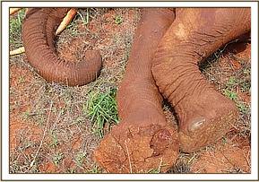 The elephant was darted using 18 mgs of Etorphine from foot and went down on lateral recumbency.