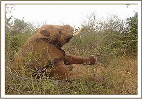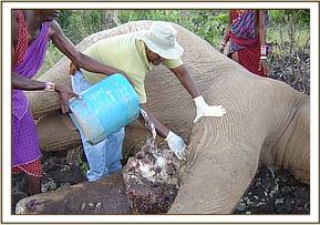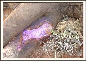 And on the 22nd, we treated a bull elephant at Ngutuni in Tsavo East that had an arrow injury on the left hind leg that was making it limp heavily and drag the leg which was swollen.