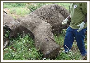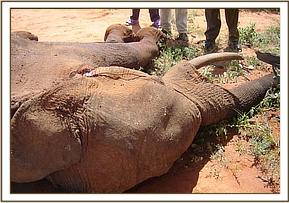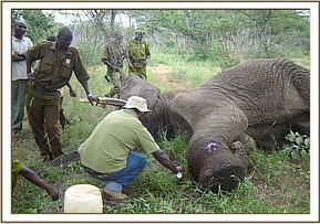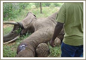 The activities started with the treatment of a bull elephant at Taita ranch with two arrow wounds on the lower left fore leg.