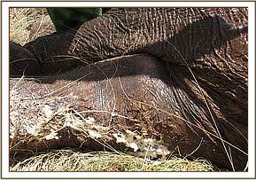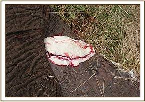 Activities for May started on the 1st with the report of an elephant at Lumo sanctuary. The elephant aged about 5 years had a badly injured left fore leg and was in very poor body condition. It was alone near a water pan probably having failed to keep pace with its family. On immobilisation, we found the left humerus fractured and some bone fragments sticking out of a small opening on the anterior side. The injury was also heavily infected. We suspected the cause to have been a bullet that shattered the bone.