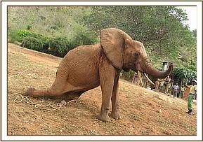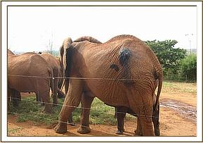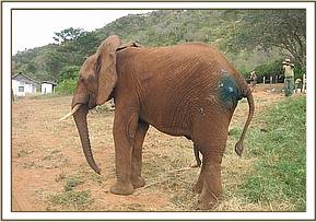 Emily is a darling to many people especially the staff of DSWT! She was raised by the trust and released to the wild with many others and she bravely took the role of the matriarch at her tender age, a role she does with authority and confidence. She leads others to the park and back to the place they remember with passion, the stockade on nearly weekly basis. She reported back on 5th of May with an arrow lodged on her rump, the metallic part still protruding.