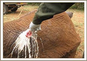The unit attended to two cases of injury to elephants previously raised and released by the David Sheldrick Wildlife Trust (DSWT), the elephants Emily and Irima were all treated at the Voi stockade after they returned with arrow shots on their rumps.