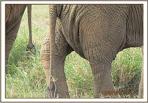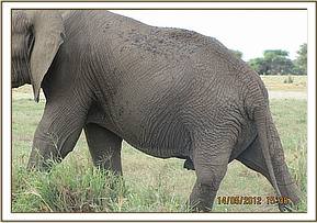 Assessment of an elephant bull with hind limb deformity, 14th May 2012 The elephant with hind limb deformity was seen in Aruba area of Tsavo East National Park foraging with 8 other male elephants. The team visited and examined both the leg and elephant movements from a short distance. The bull didnt show any signs of pain and could place some weight on the affected leg. Conclusion was made that this was an old wound that healed with leg deformity and poses no danger to the Elephant.