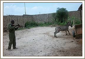 Rescued of a stranded Zebra in Likoni area of Mombasa, 23rd May. The female Zebra was reported by a south coast resident to have strayed into his compound the previous night from unknown location. Zebras have never been reported in Shimba hills and Mombasa area and thought to have been kept illegally in the area. Darting was done using 6mgs of etorphine and 60 mgs of xylazine. She was transported through the Likoni ferry to Haller Park in Bamburi where she got a secured home. It was revived by use of Diprenorphine and Antisedan and released in good condition.