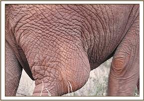 A sub adult lame elephant was reported near Ndololo camp, Tsavo east and upon being traced found to be an old injury that had already healed with no danger to the animal. The leg was deformed at the right knee joint making it shorter than the rest hence the abnormal movement.