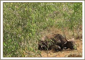 The buffalo was immobilized using 4 mgs of Etorphine mixed with 50 mgs of Xylazine using a dan-inject dart from a dan-inject dart gun and it went down in 5 minutes. The strong wire snare was removed and the wounds around the base of the horns treated. The buffalo was administered with Dexamethasone Hcl and long acting antibiotic parenterally.