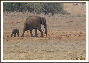 The elephant was fastened to ropes that were tied onto a vehicle and pulled out of the mud. She was assisted onto her feet by a team from Tsavo vet and DSWT stockade staff. She stood up and joined a nearby family and calmly walked away.