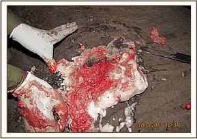 Treatment of an orphan rescued from Taita Ranch, 25th October 2011. One of the orphans did not respond well and lost condition rapidly. Examination revealed stress and poor feeding. 15 cc of vitamin B12 complex (catasol) was administered and the response was good.